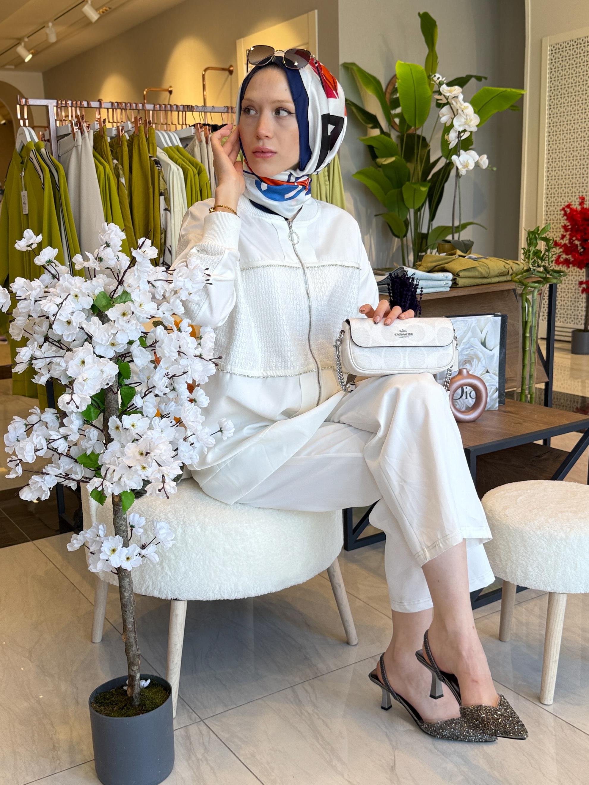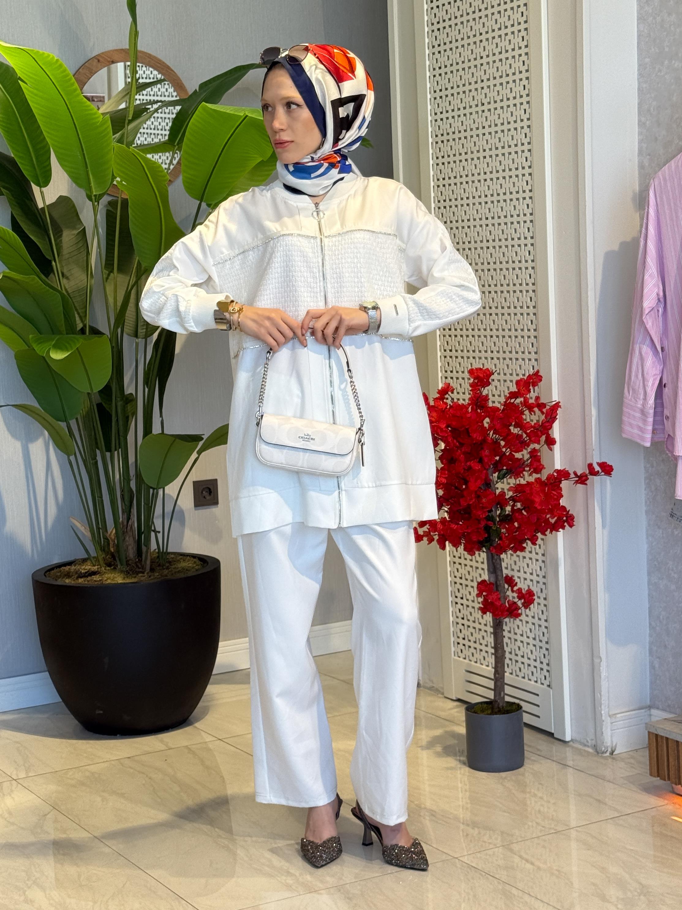 Romantik dokunuşları modern tasarımla birleştiren Dantel Detaylı Fermuarlı Takım, zarif stilini konforla buluşturmak isteyenler için ideal bir tercih. Üst parçasında yer alan ince dantel detaylar feminen bir hava katarken, ön fermuar kapaması sayesinde kullanım kolaylığı sunar. Takımın rahat kesimli alt parçası gün boyu konfor sağlarken, şık görünümünden ödün vermez.
