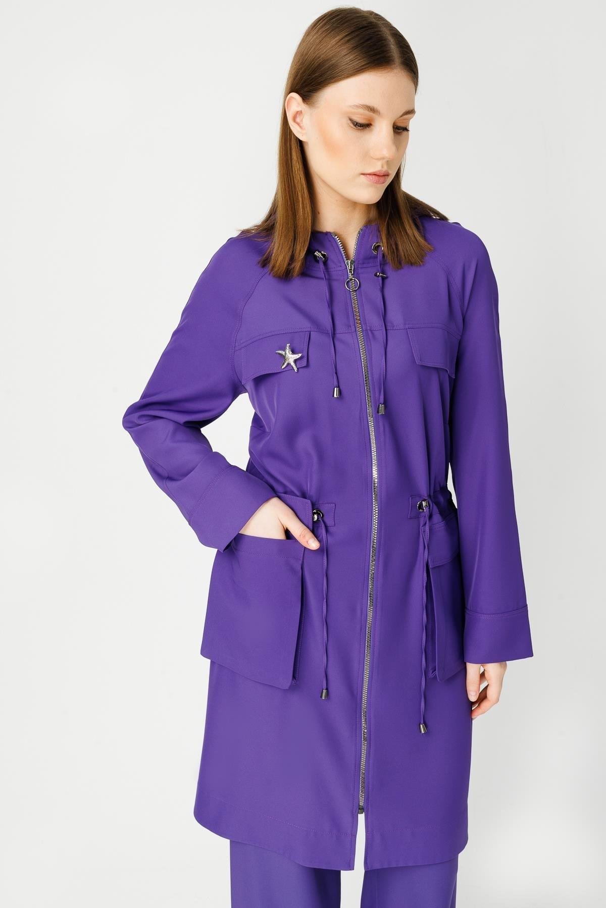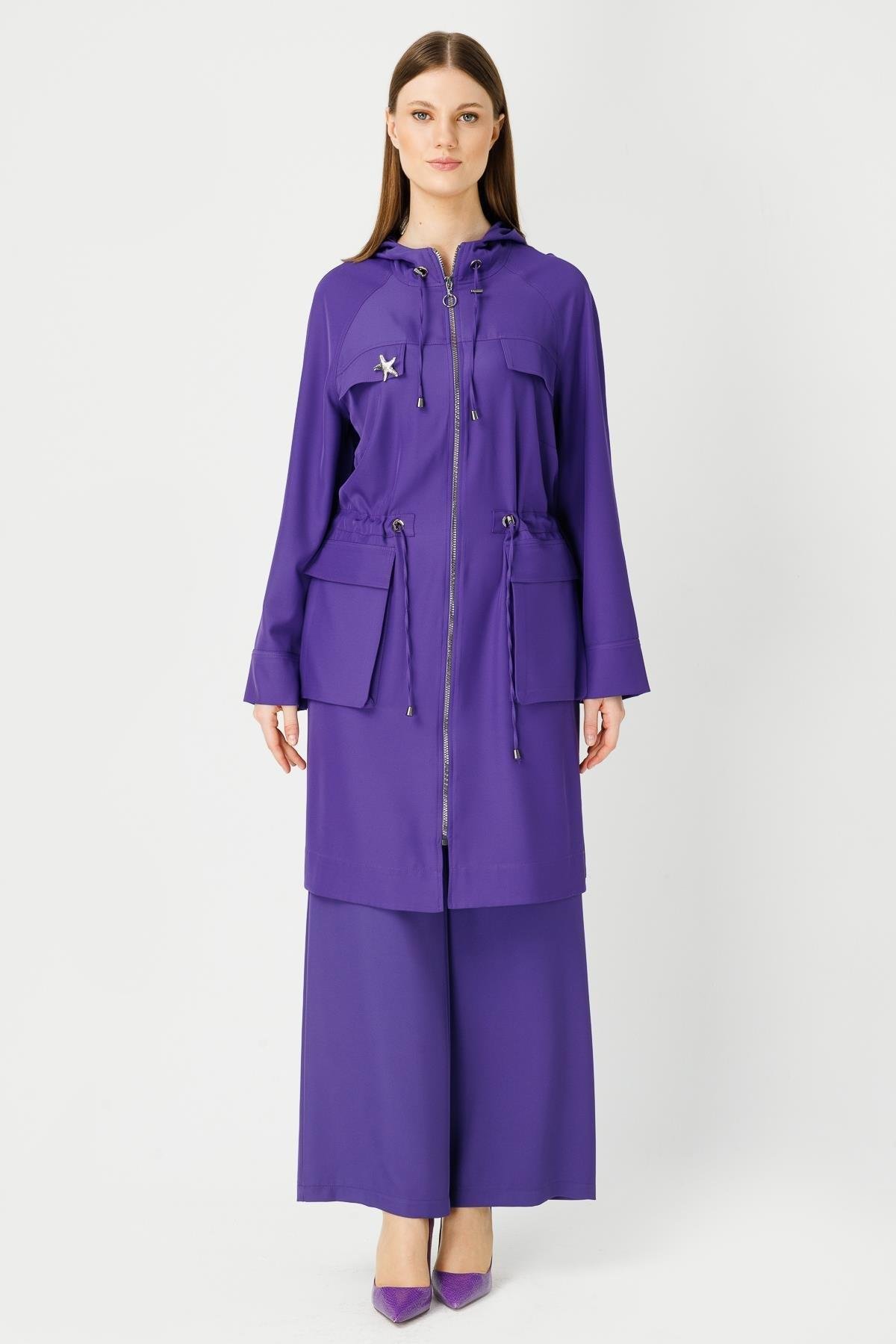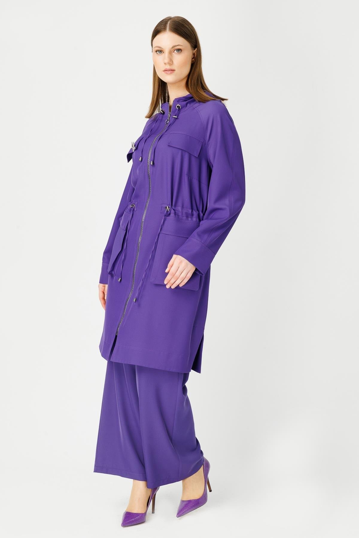 Bel kısmındaki büzgü detayı isteğe göre ayarlanabilir.