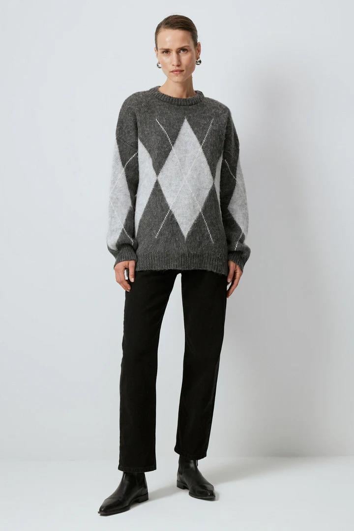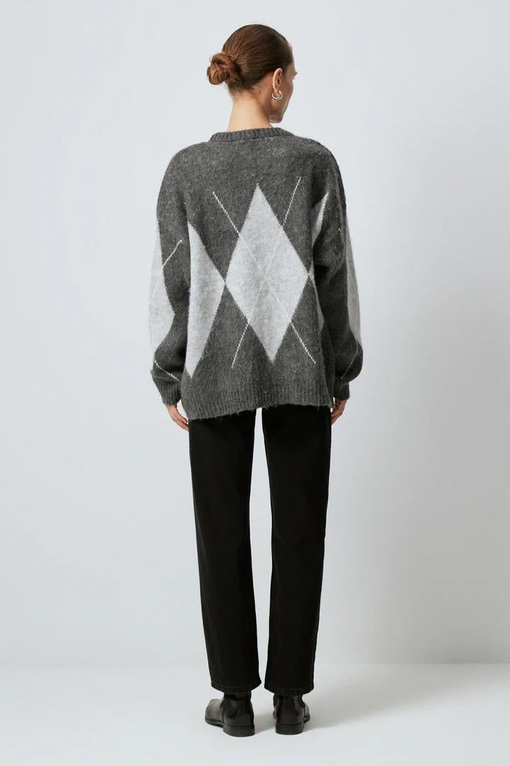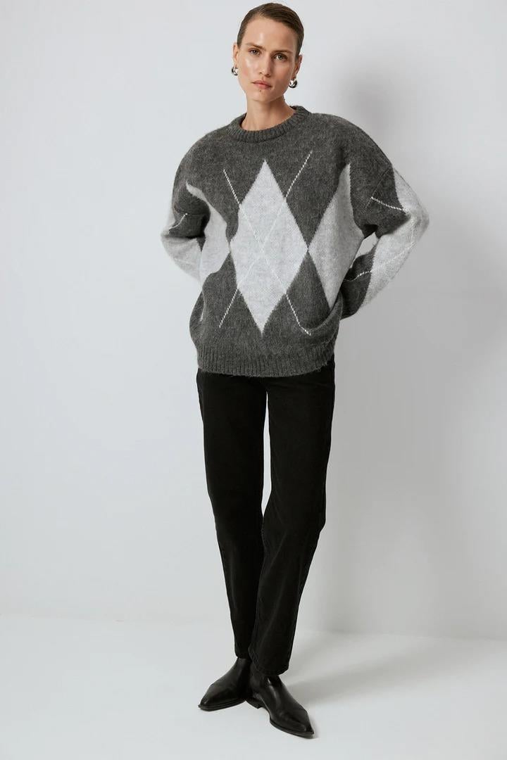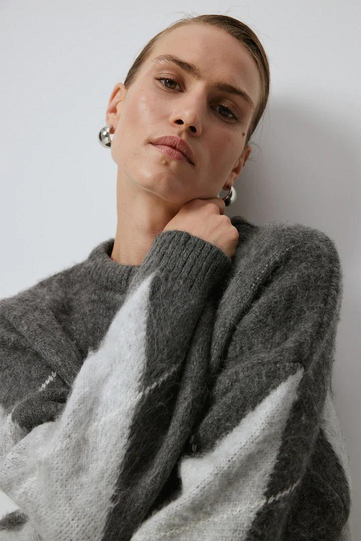 Touche Baklava Desenli Triko Kazak - Antrasıt (4983)