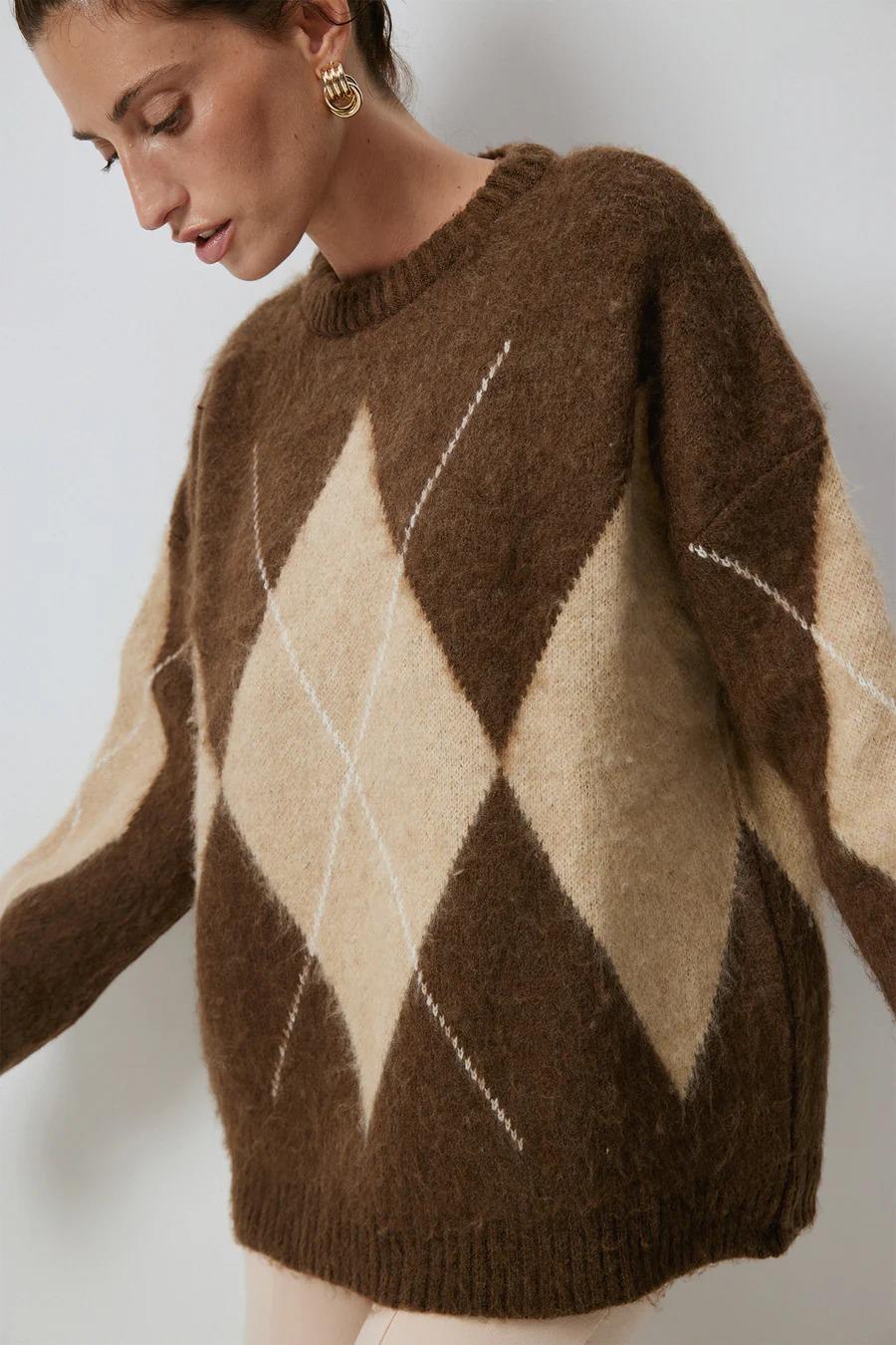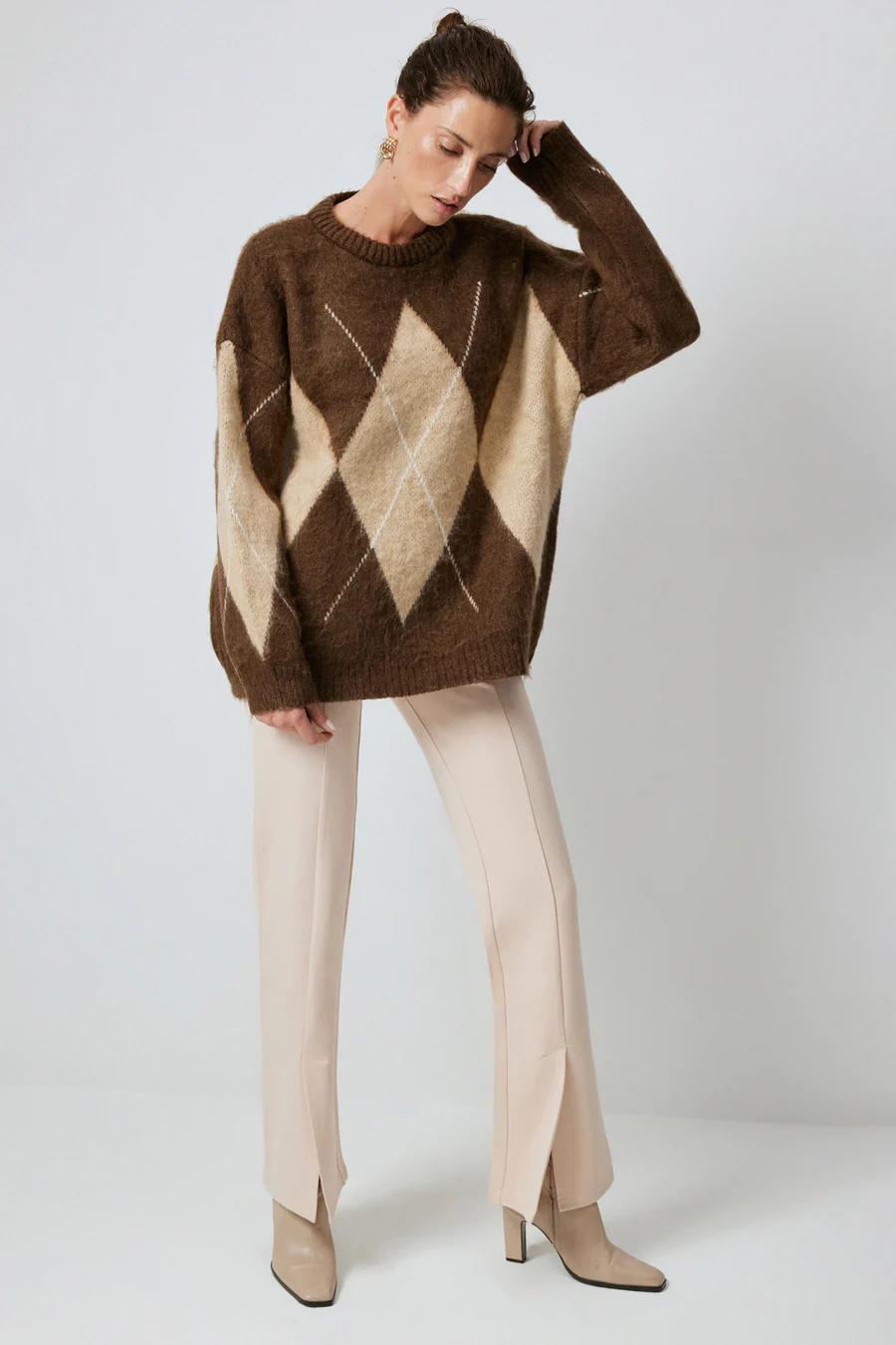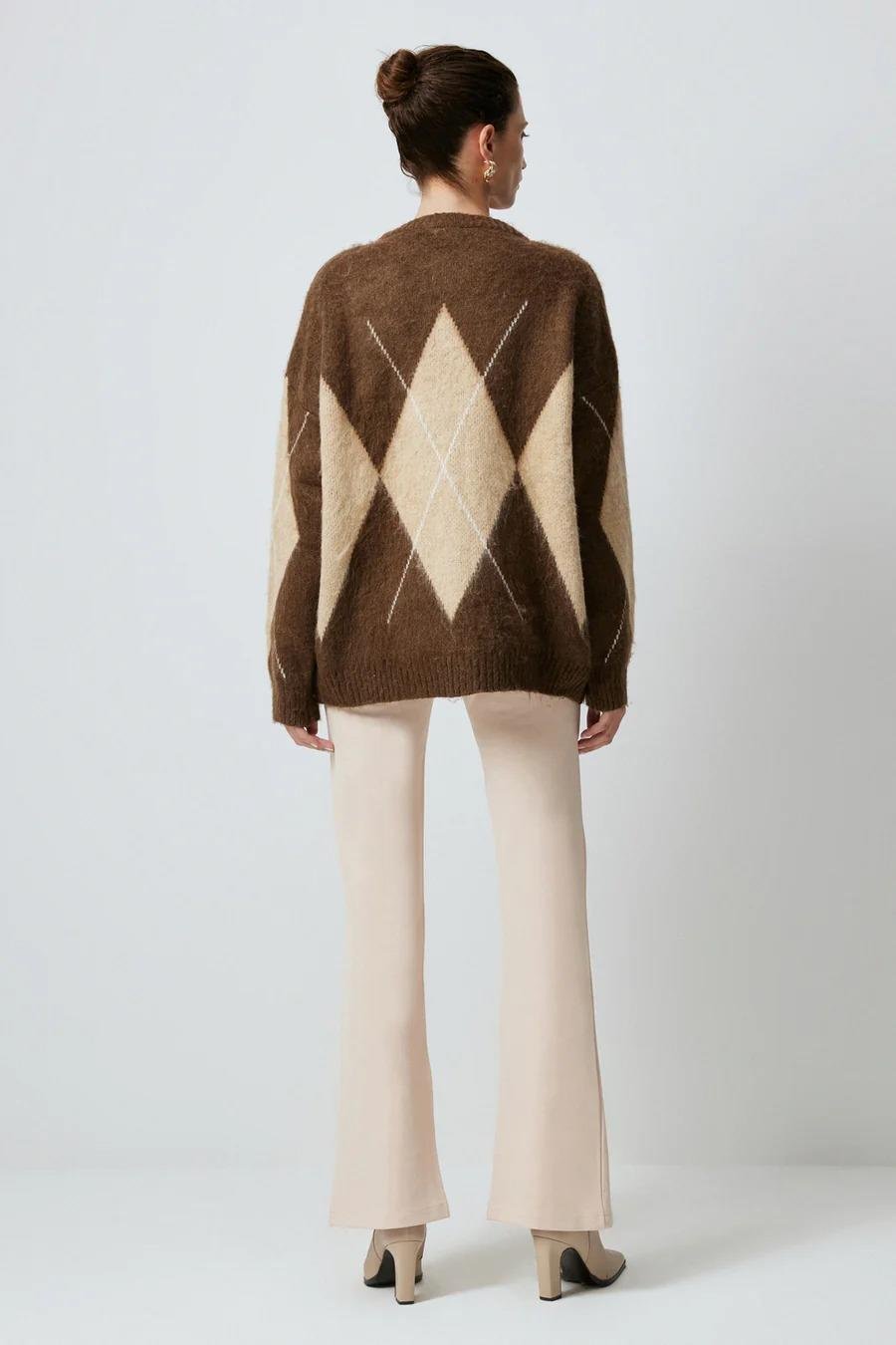 Touche Baklava Desenli Triko Kazak - Kahve (4983)