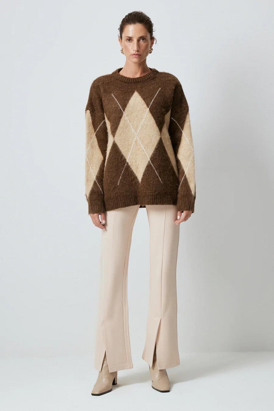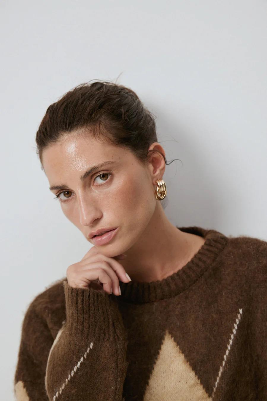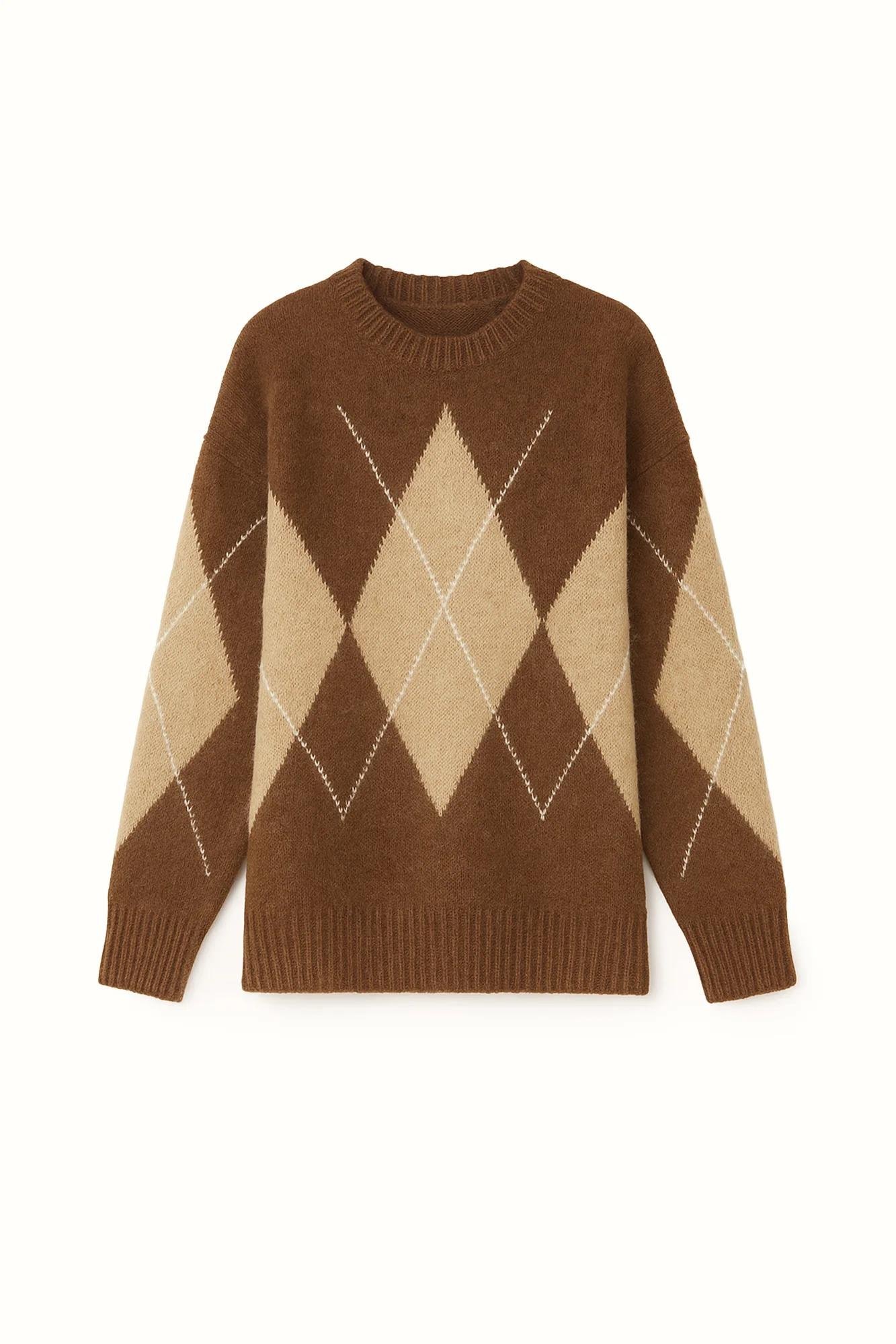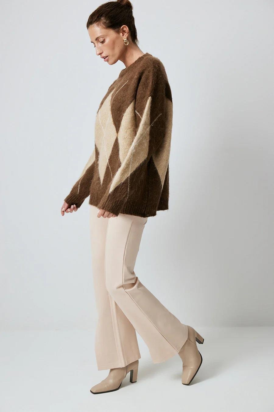 Touche Baklava Desenli Triko Kazak - Kahve (4983)