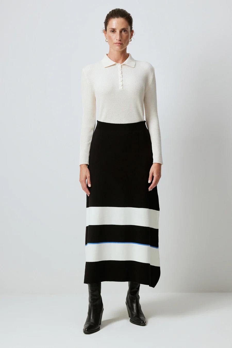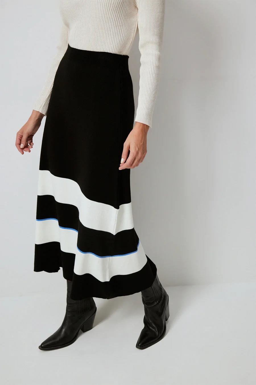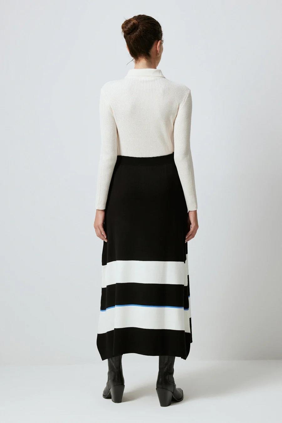 Touche Beli Lastikli Çizgili Triko Etek - Siyah (4981)