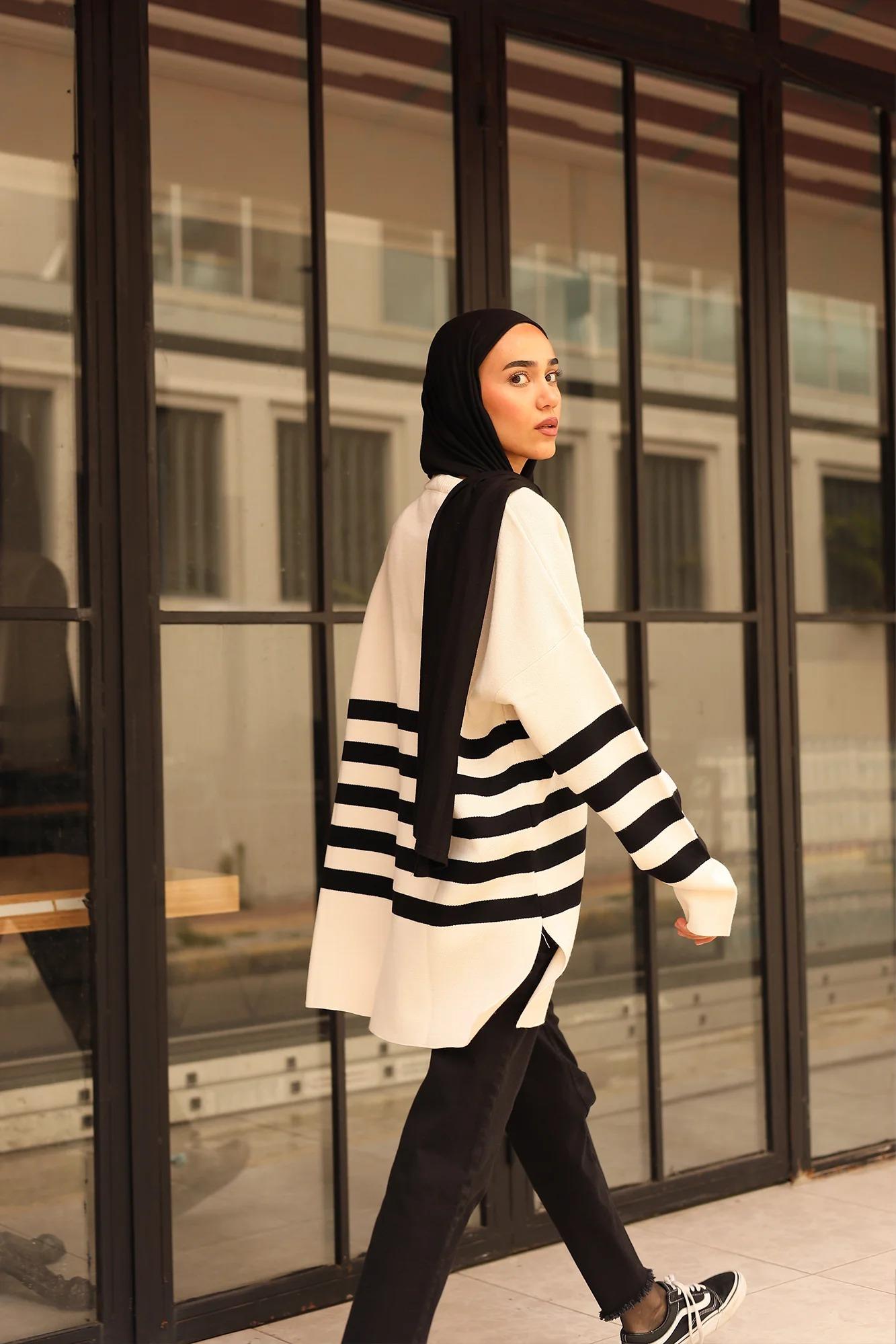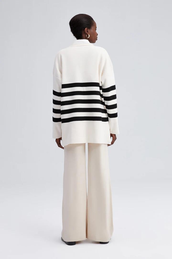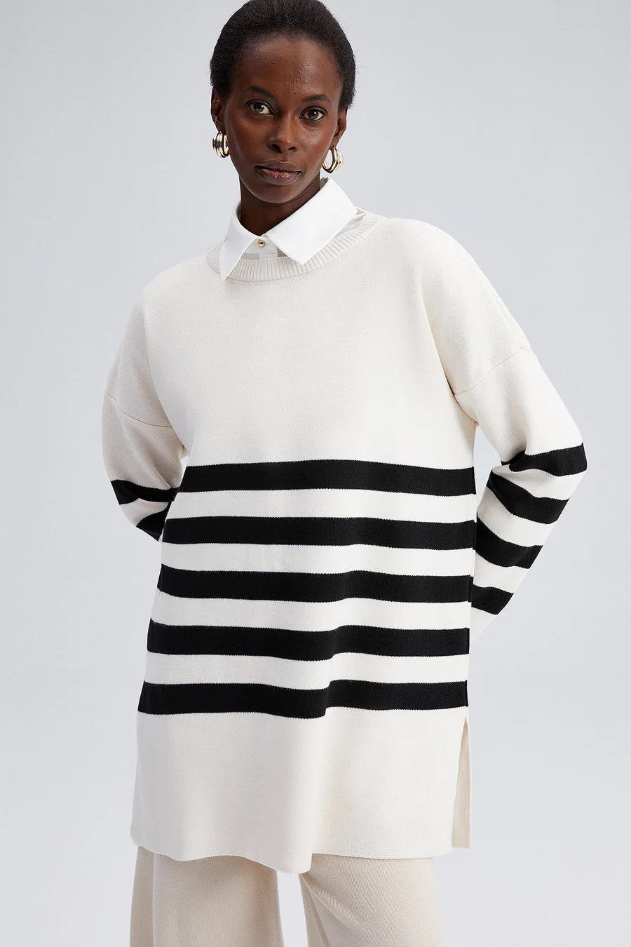 Touche Çizgili Triko Tunik - Beyaz (4979)