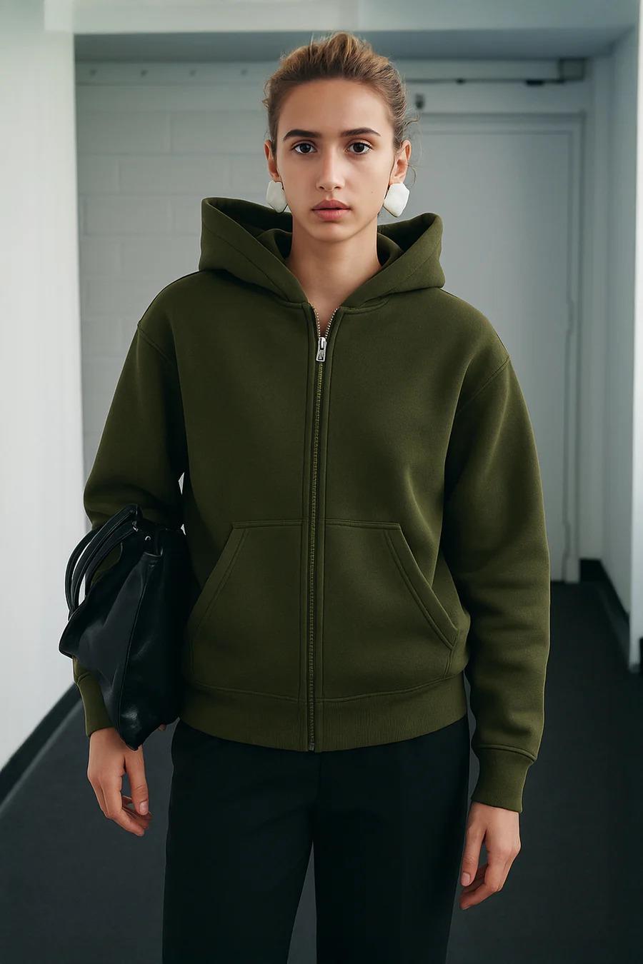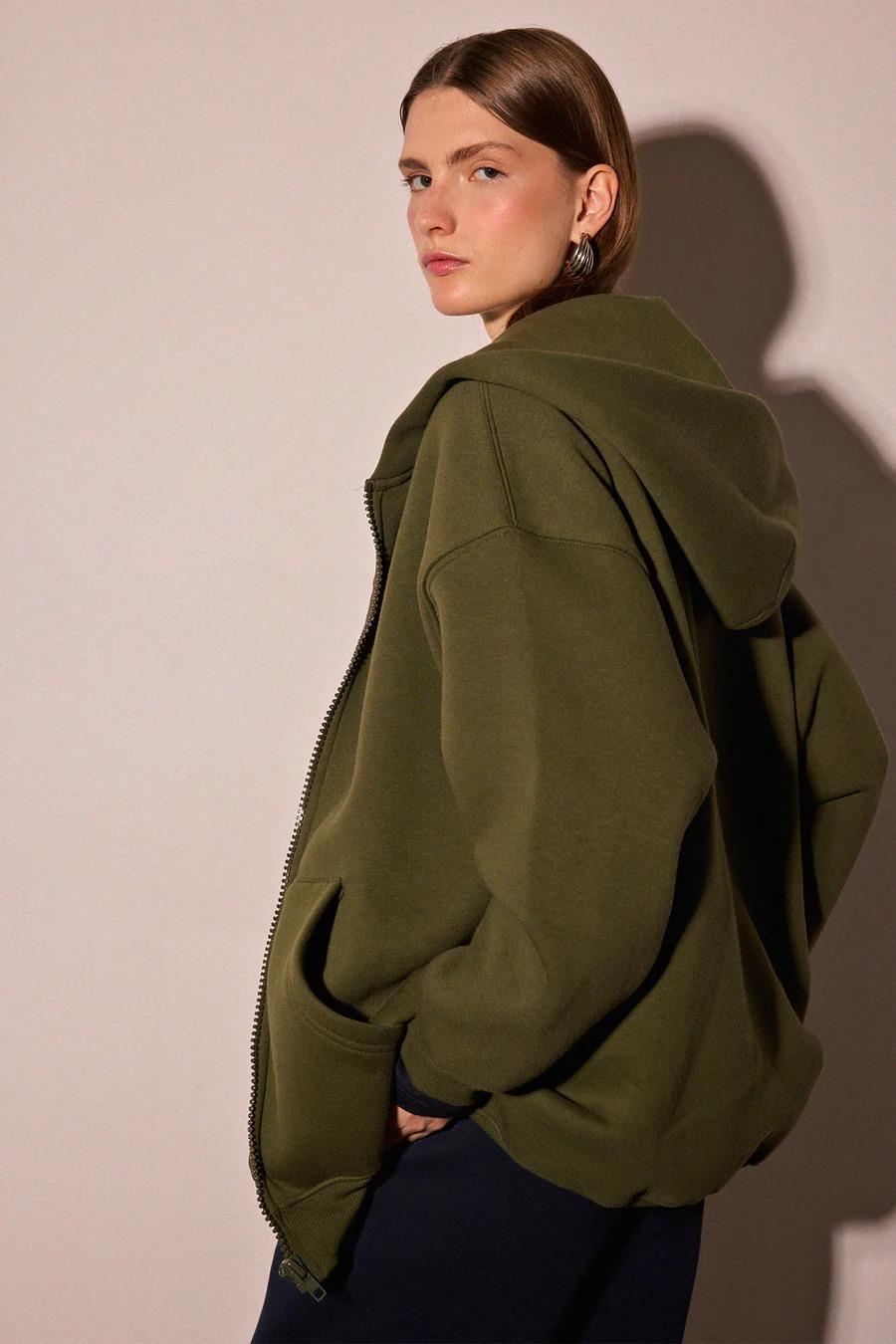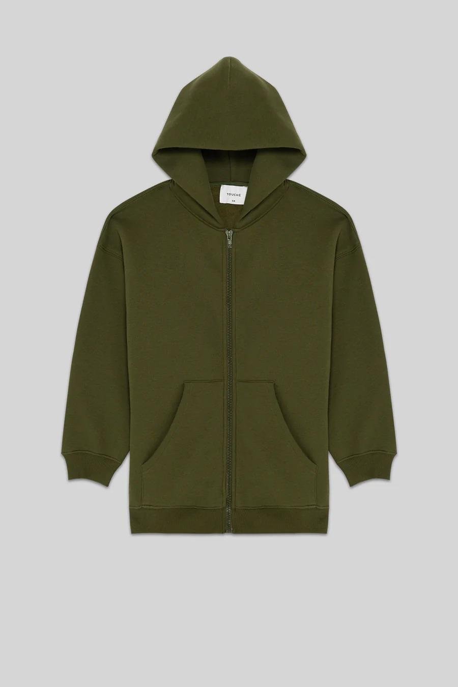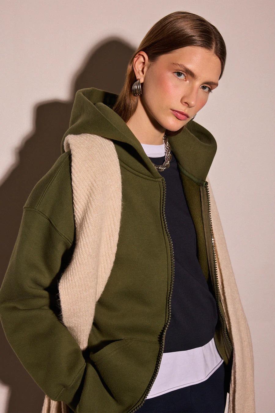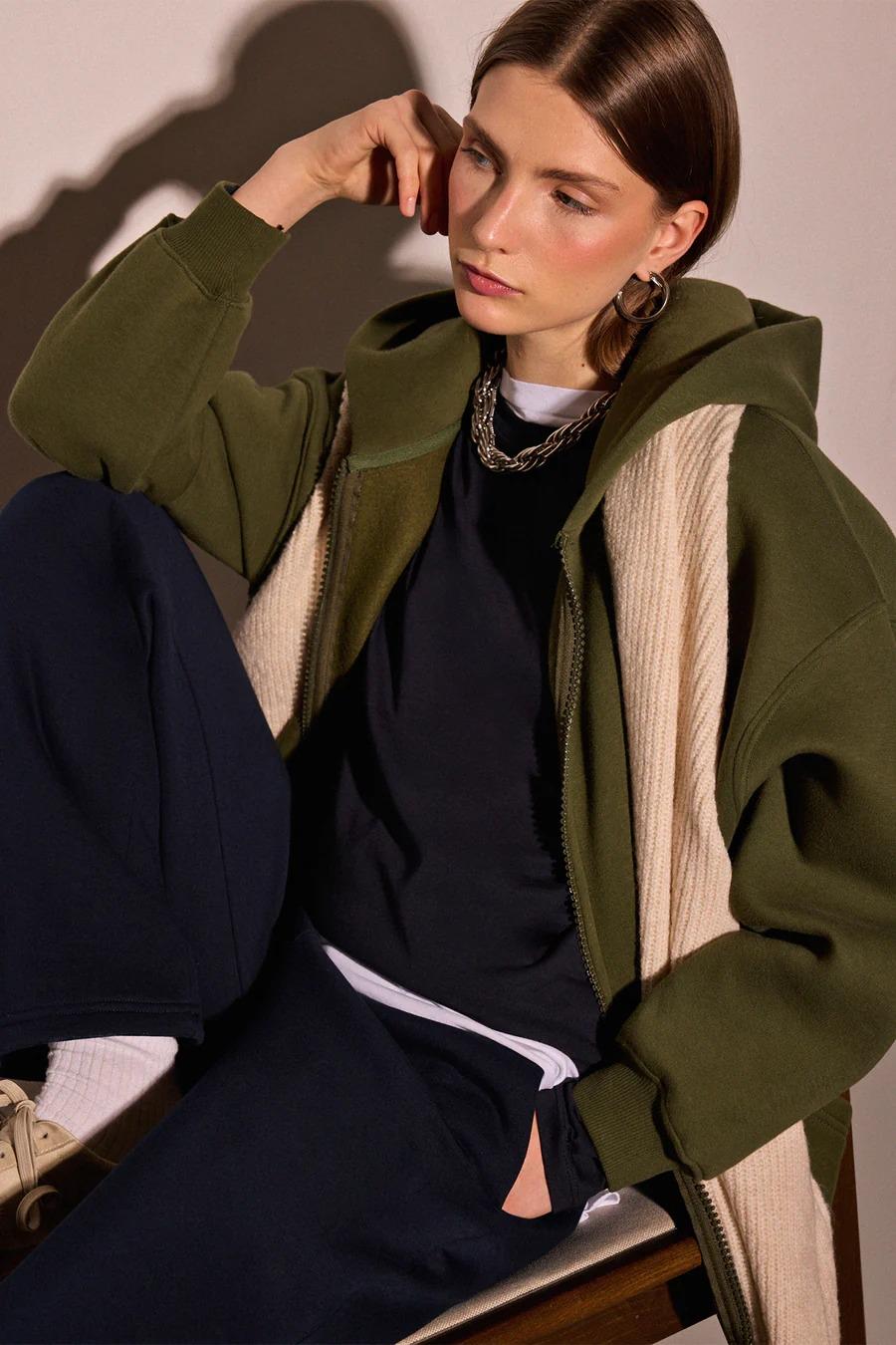 Touche Kapüşonlu Örme Ceket - Haki (4995)