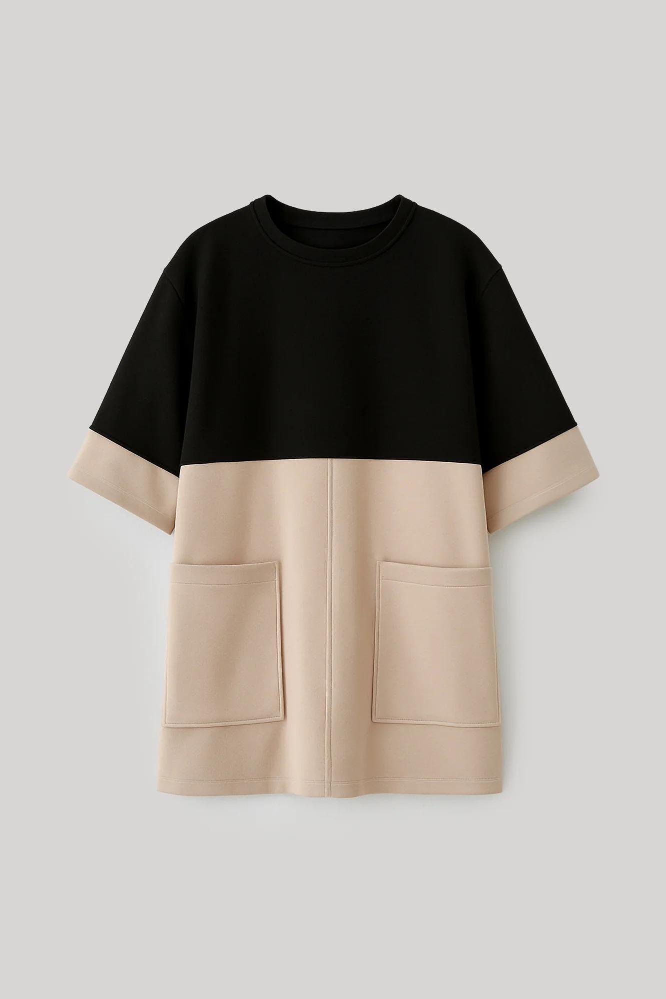 Touche Kontrast Renkli Kaşe Panço - Siyah (4988)