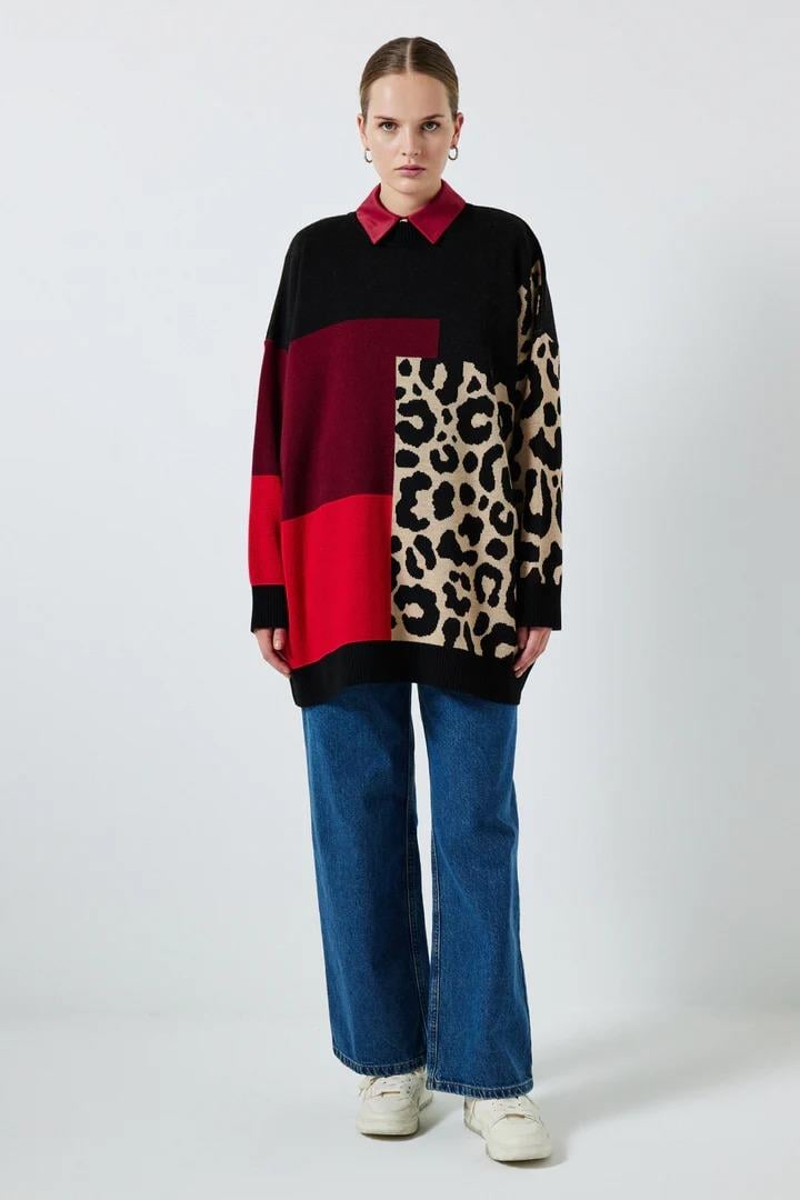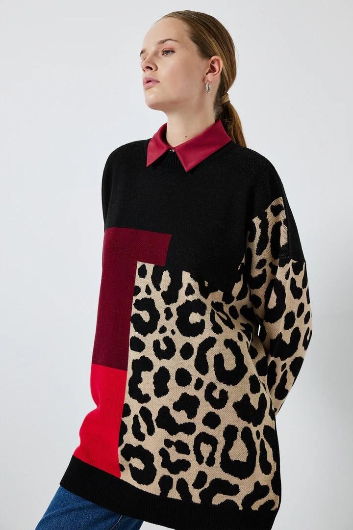 Touche Leopar Blok Desenli Triko Tunik - Desenli (4987)