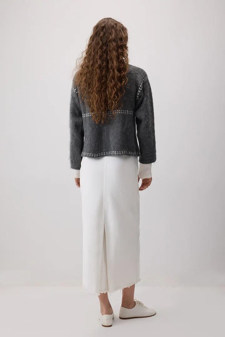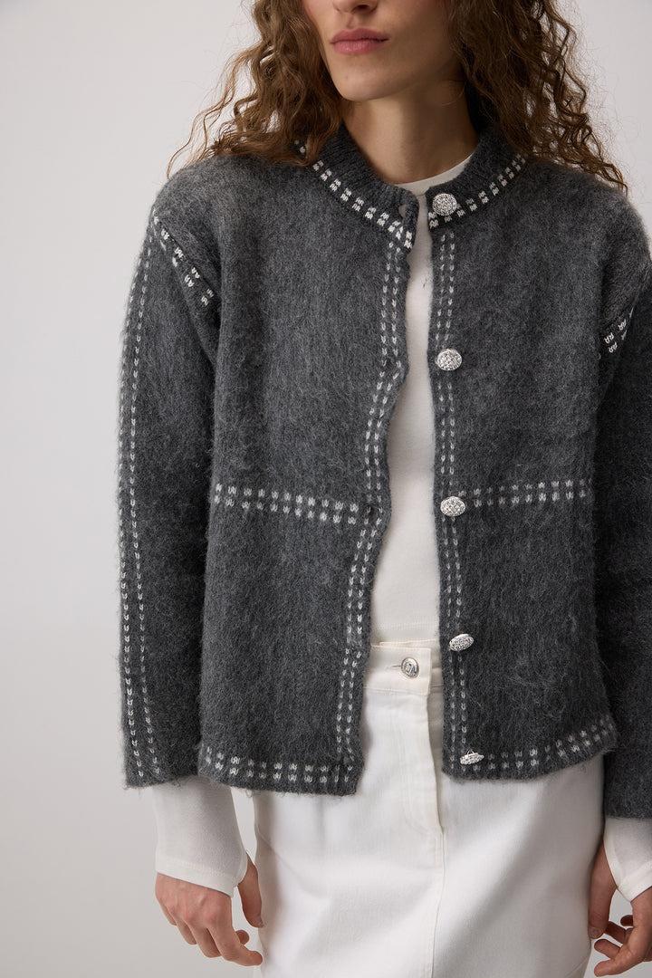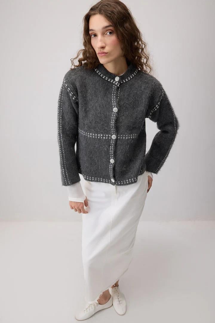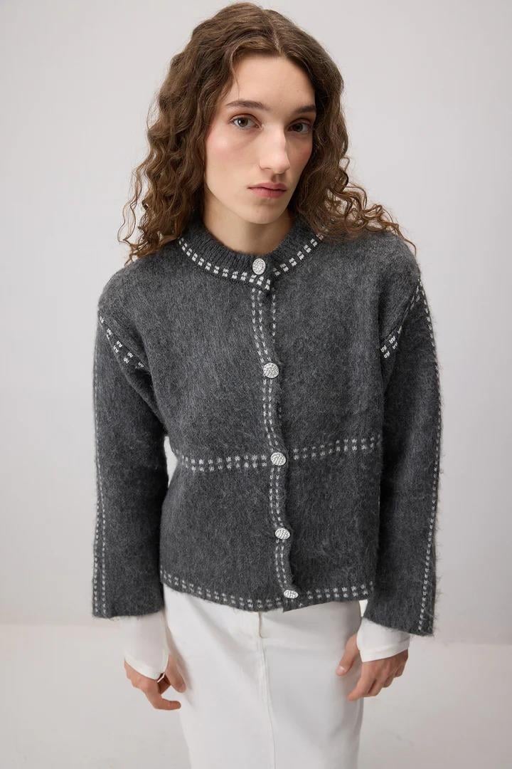 Touche Şardonlu Kontrast Hırka - Antrasıt (4991)