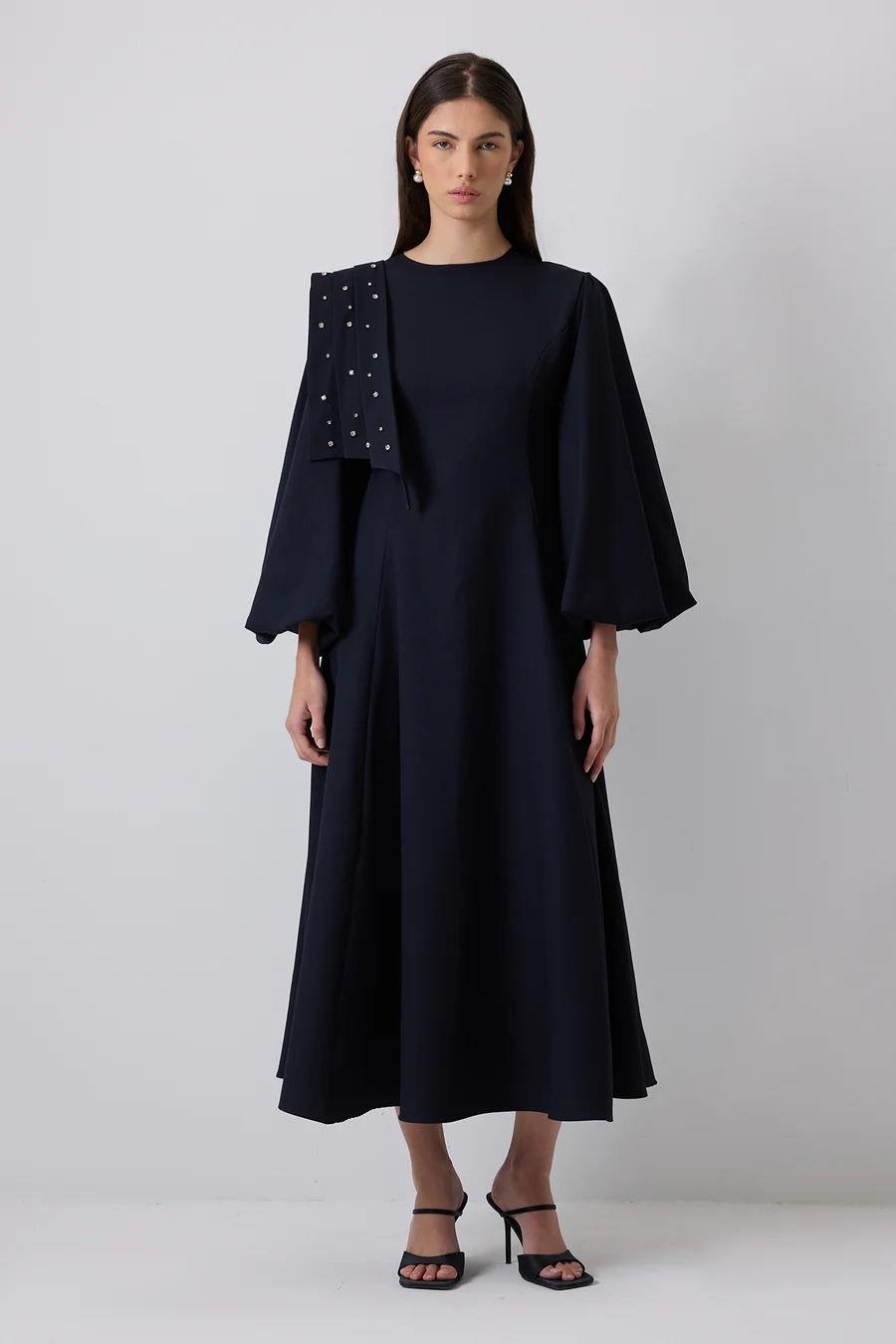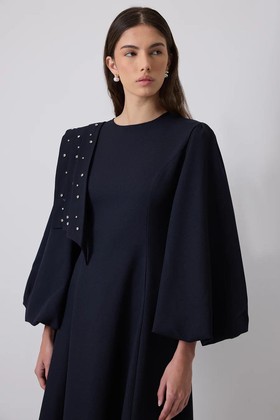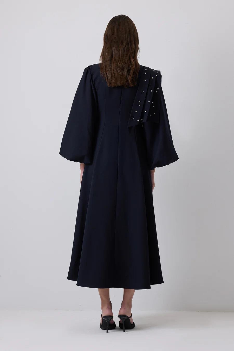 Touche Taş İşlemeli Balon Kollu Elbise - Lacivert (5001)