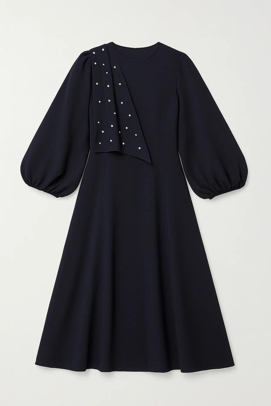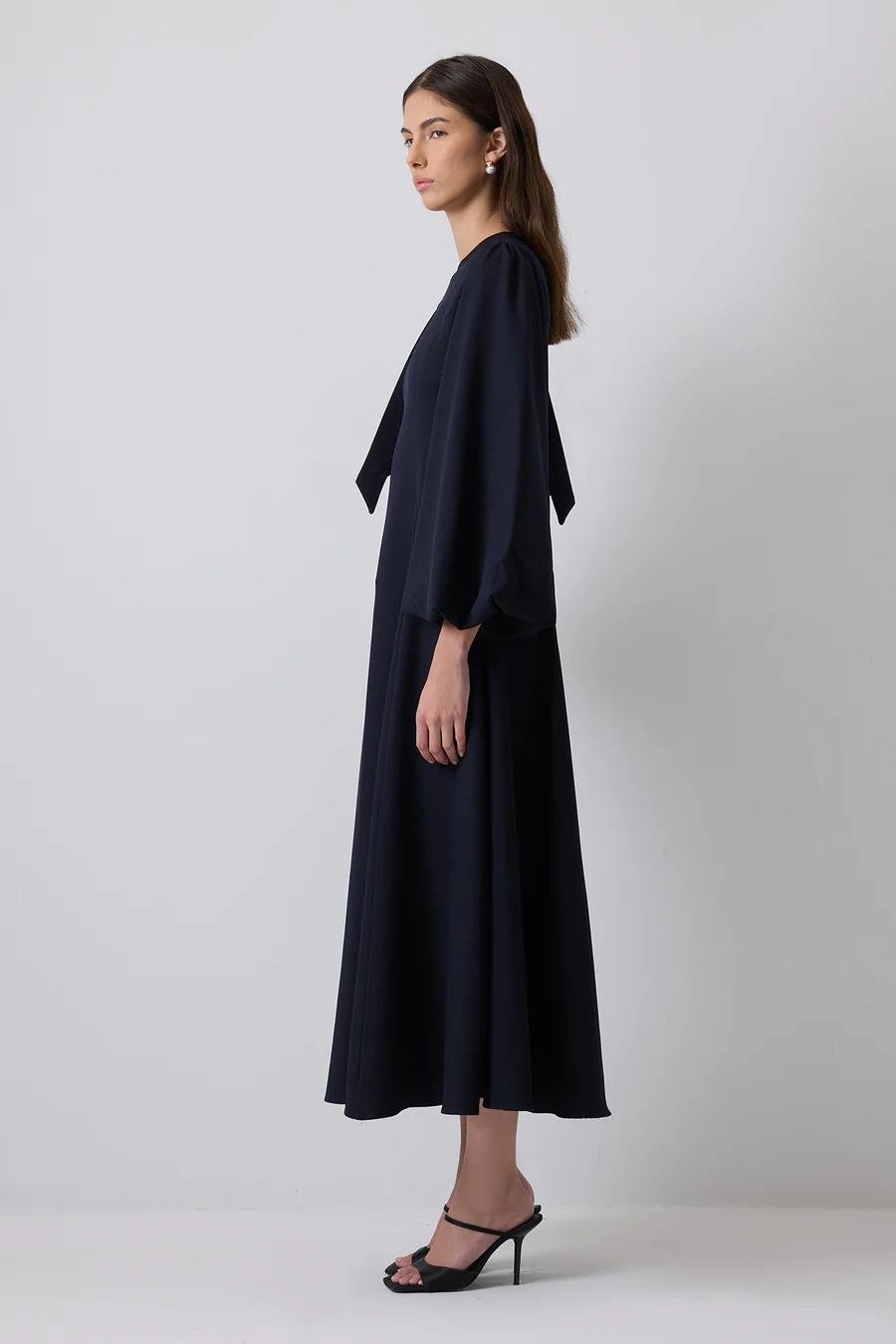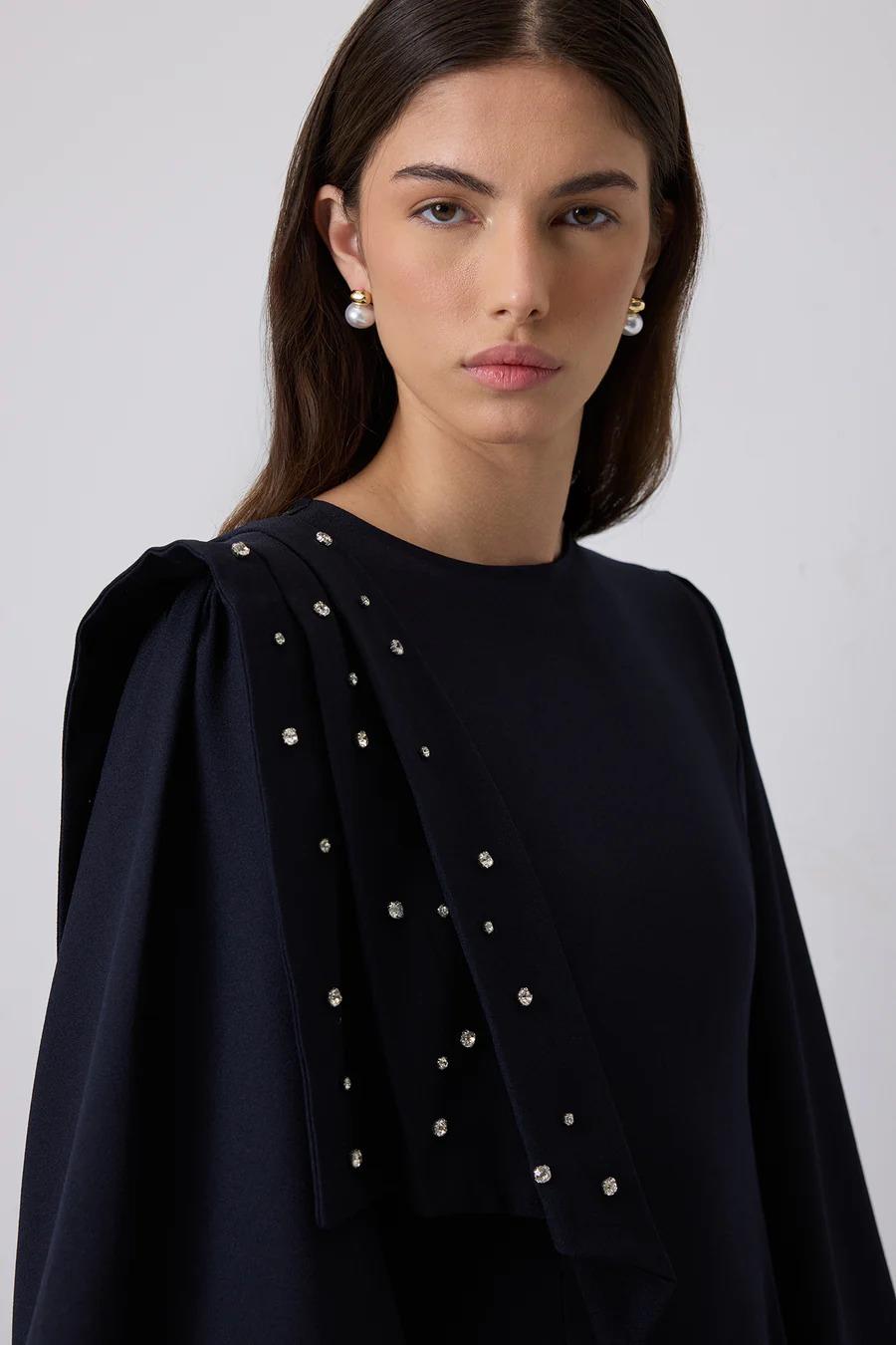 Touche Taş İşlemeli Balon Kollu Elbise - Lacivert (5001)