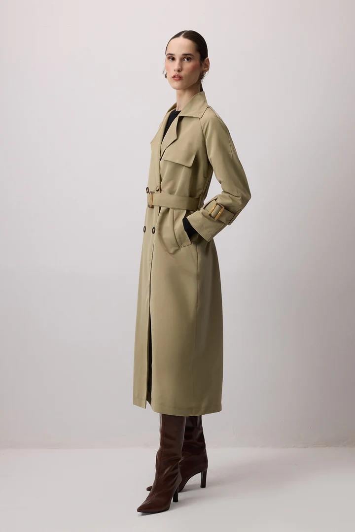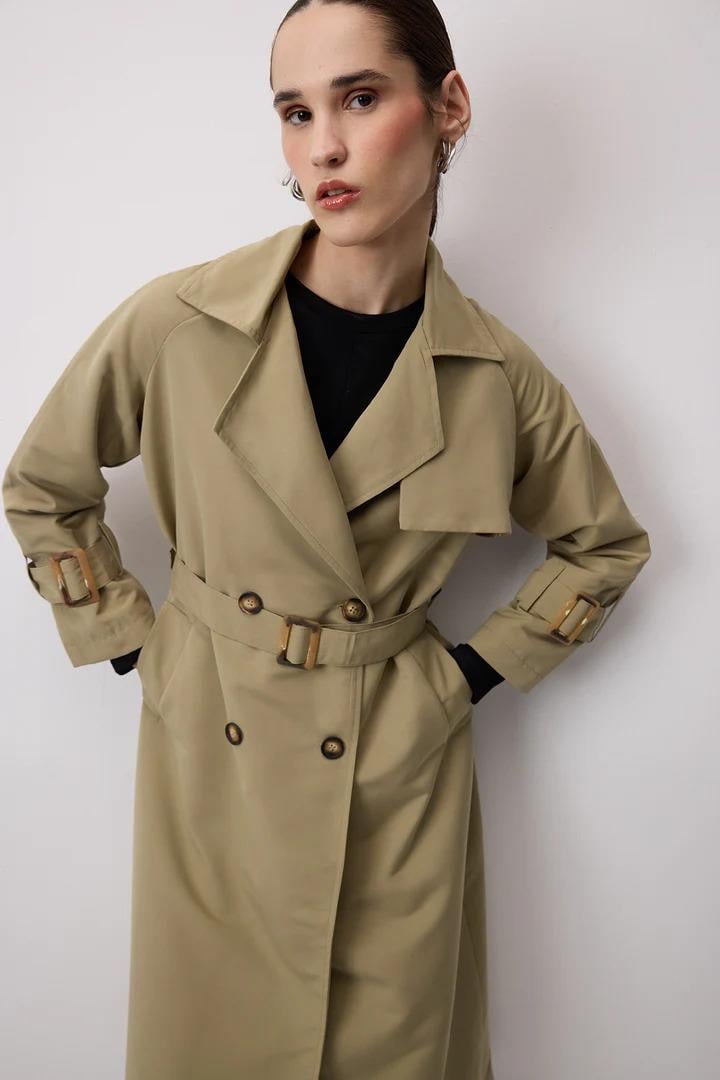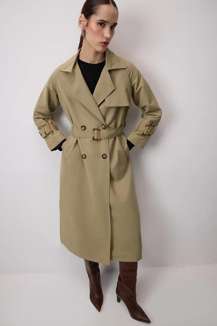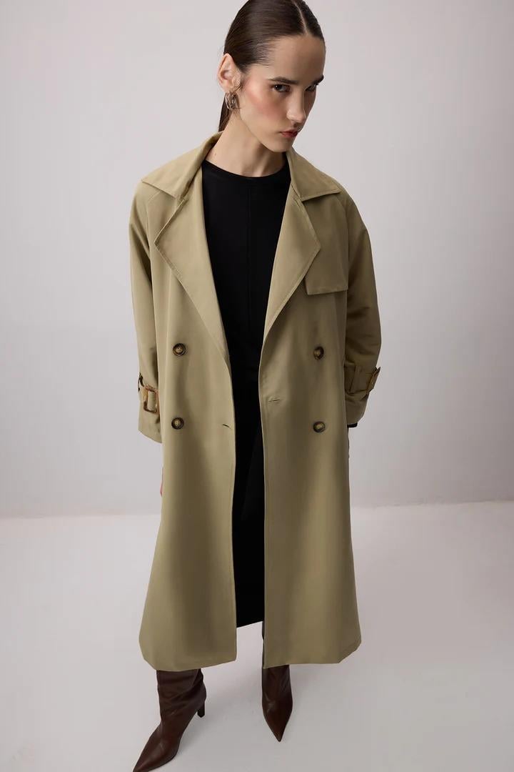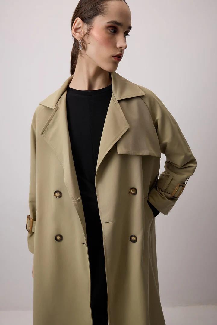 Touche Toka Detaylı Oversıze Trençkot - Çağla (4989)