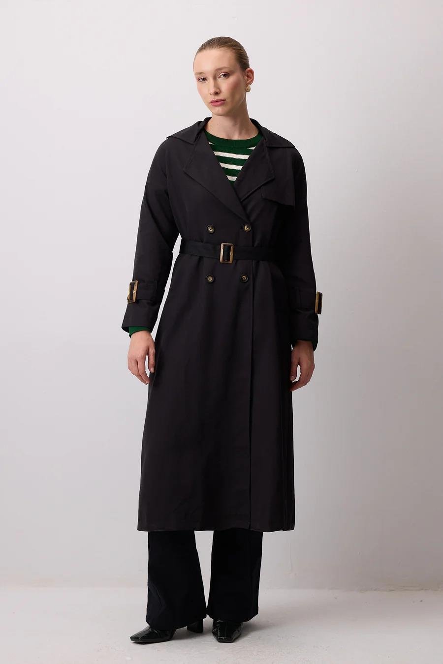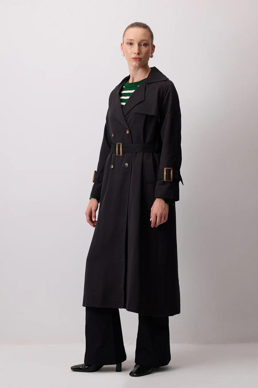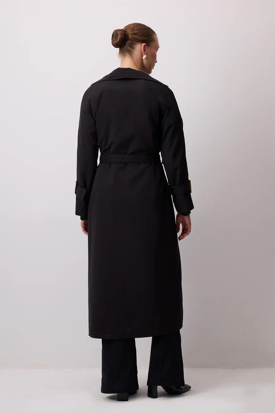 Touche Toka Detaylı Oversıze Trençkot - Siyah (4989)