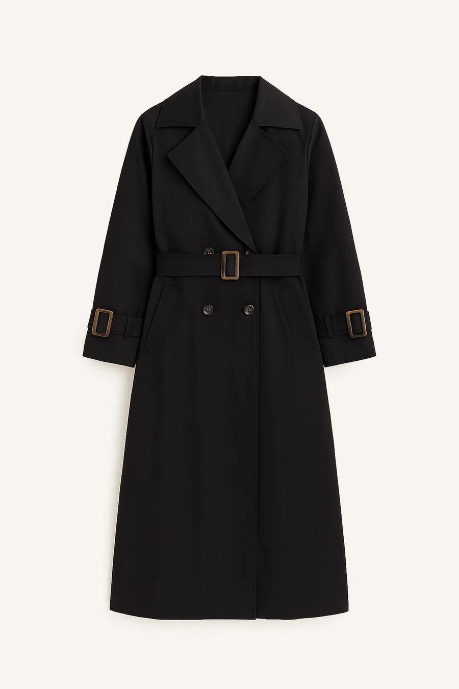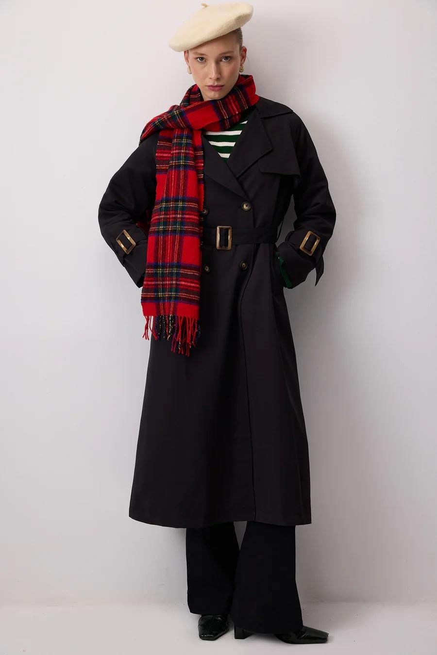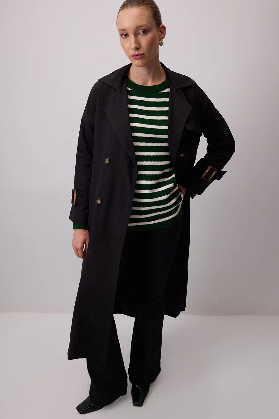 Touche Toka Detaylı Oversıze Trençkot - Siyah (4989)